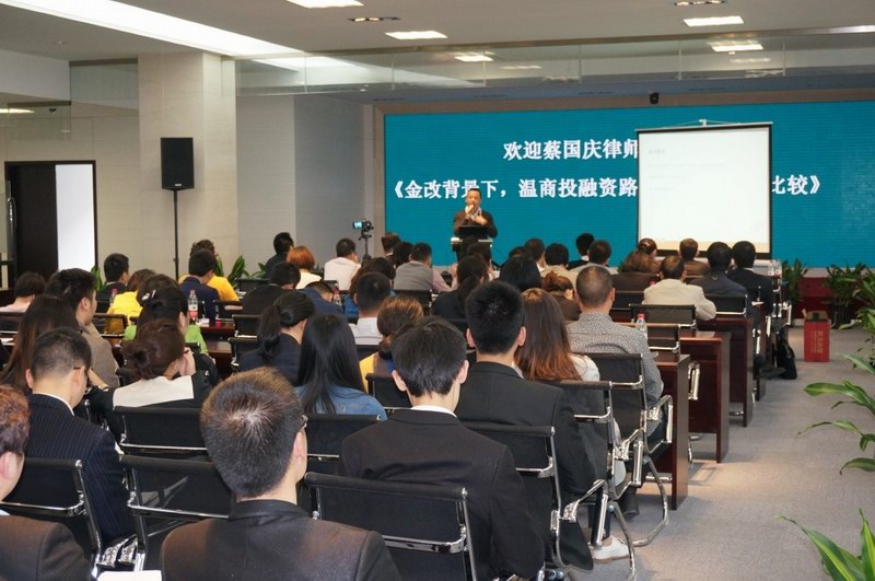 ??????? ?4月26日下午,溫州金融改革廣場(chǎng)舉辦了一場(chǎng)名為《金改背景下,溫商投融資路徑選擇和優(yōu)勢(shì)比較》的法律培訓(xùn)活動(dòng)。此次培訓(xùn)活動(dòng)主講為溫州市金融投資集團(tuán)有限公司首席法律顧問、金融改革廣場(chǎng)法務(wù)總監(jiān)蔡國慶律師,市金投集團(tuán)、金融板塊二級(jí)企業(yè)代表及金改廣場(chǎng)各入駐單位代表人員參加了培訓(xùn)活動(dòng)。??????? 在培訓(xùn)中,蔡國慶律師結(jié)合金融危機(jī)背景下溫州金改及現(xiàn)行法律法規(guī)和政策,就股權(quán)投資交易、如何區(qū)分股...