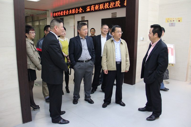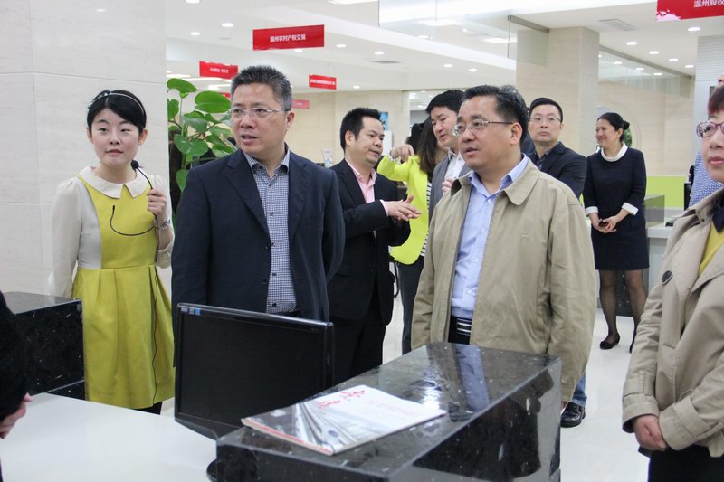 2013年5月6日上午,嘉興市副市長(zhǎng)盛全生一行7人在溫州市委常委朱忠明、市金投集團(tuán)總經(jīng)理岑利陪同下,蒞臨溫州金融改革廣場(chǎng)考察。