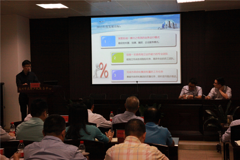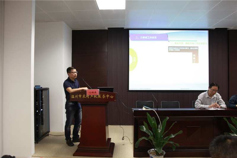 溫州市農(nóng)村產(chǎn)權(quán)服務(wù)有限公司副總經(jīng)理羅朝輝匯報(bào)工作
