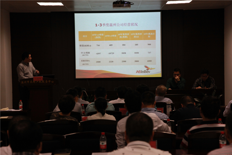 ??????? 在集團(tuán)全資、控股企業(yè)匯報(bào)后,參股的浙江金海蘊(yùn)生物有限公司、英博雙鹿啤酒集團(tuán)、溫州市農(nóng)村產(chǎn)權(quán)服務(wù)有限公司、溫州金融資產(chǎn)交易中心有限公司等成員公司就業(yè)務(wù)開(kāi)展方面進(jìn)行了匯報(bào)。其中,溫州市農(nóng)村產(chǎn)權(quán)服務(wù)中心已完成農(nóng)村產(chǎn)權(quán)交易733宗,交易總金額達(dá)5.97億元,交易服務(wù)項(xiàng)目和數(shù)量比去年都有大幅增加,較去年同期增長(zhǎng)百分之七十以上。
