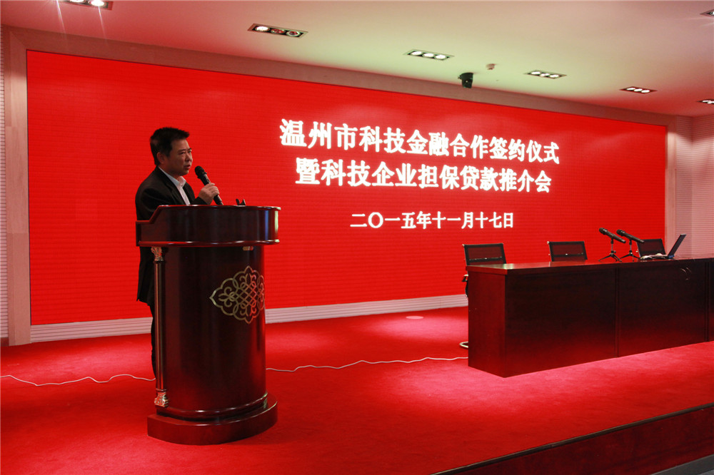 溫州市科技局、中國(guó)農(nóng)業(yè)銀行溫州分行、溫州市金投融資擔(dān)保有限公司就“科保貸”項(xiàng)目簽約