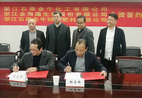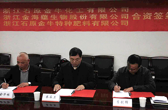 11月29日下午,溫州金投集團(tuán)旗下浙江金海蘊(yùn)生物股份有限公司與浙江農(nóng)資集團(tuán)旗下的浙江石原金牛化工有限公司、浙江石原金牛特種肥料有限公司在杭州簽署合資協(xié)議。三方在銷(xiāo)售渠道、營(yíng)銷(xiāo)隊(duì)伍、生產(chǎn)供應(yīng)等方面進(jìn)行整合,成立集研發(fā)、生產(chǎn)、銷(xiāo)售于一體的工貿(mào)型現(xiàn)代化特種新型肥料企業(yè),合資公司暫定名為浙江海洋生物技術(shù)有限公司,公司注冊(cè)地在溫州市洞頭區(qū),主營(yíng)產(chǎn)品為羊棲菜海藻肥等海洋生物肥料。
