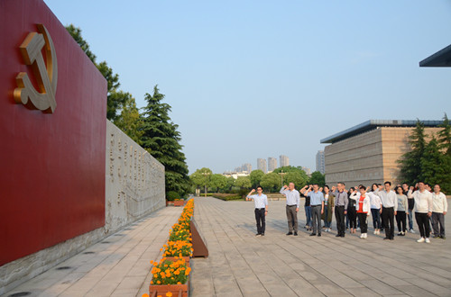 黨員們在紀(jì)念館宣誓墻前重溫入黨誓詞