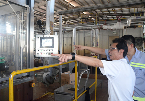 集團黨委書記、董事長、總經(jīng)理邱海華進入車間,關(guān)切詢問一線工作人員的安全生產(chǎn)、生活等情況,對他們兢兢業(yè)業(yè)的工作精神給予高度肯定,感謝他們在高溫酷暑天氣不畏辛苦堅守崗位,并希望大家多注意身體,做到勞逸結(jié)合。
