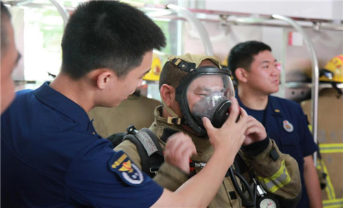 特勤大隊宣傳干事陳鵬,對大家最感興趣的停放在庫房的滅火消防車、舉高消防車、專勤消防車、后援消防車等,按照各車的功能特點做了詳細(xì)的介紹和演示,對消防隊員出勤時的隨身裝備做了講解和演示,并現(xiàn)場指導(dǎo)體驗者如何正確穿戴消防滅火防護(hù)服及其他設(shè)備。他還帶領(lǐng)大家參觀了消防隊員的宿舍,近距離地了解消防員的工作和生活,最后大家在多媒體室觀看了溫州市消防救援支隊特勤大隊的宣傳教育片。
