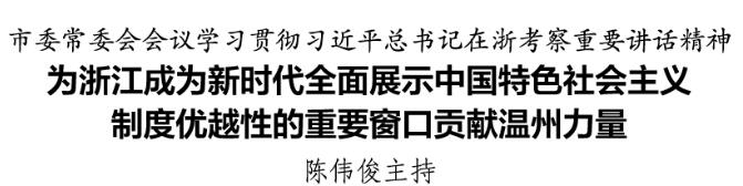 會議強調(diào),要迅速掀起學(xué)習(xí)貫徹習(xí)近平總書記重要講話精神的熱潮,堅持以“八八戰(zhàn)略”為統(tǒng)領(lǐng),牢記習(xí)近平總書記寄予溫州“續(xù)寫創(chuàng)新史”的殷殷囑托,干在實處、走在前列、勇立潮頭,確保實現(xiàn)今年經(jīng)濟社會發(fā)展目標(biāo)任務(wù),在浙江成為新時代全面展示中國特色社會主義制度優(yōu)越性的重要窗口的宏偉實踐中提供更多溫州素材和溫州實踐。