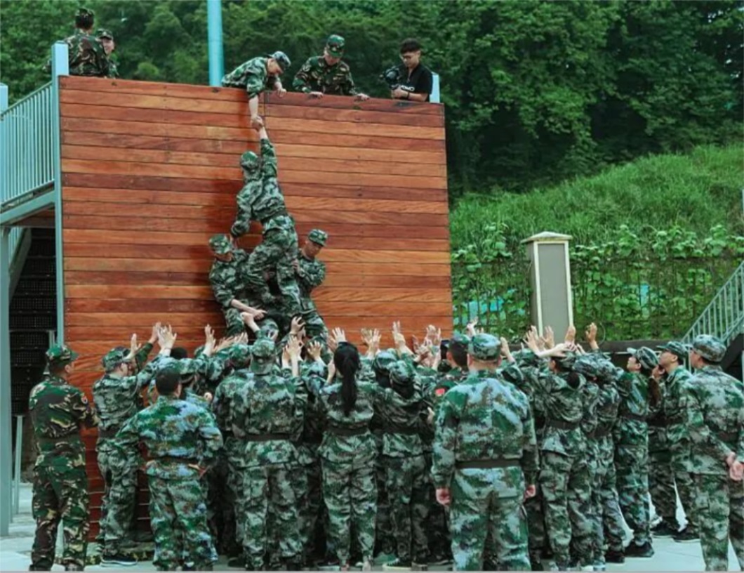 聽從教官指揮,以軍人的標(biāo)準(zhǔn)嚴(yán)格要求自己,練習(xí)稍息、立正、起步走等隊列動作,步伐矯健,口號響亮,精神飽滿。晚上,還進行了緊集集合和疊軍被比賽;學(xué)唱《團結(jié)就是力量》《打靶歸來》等軍營歌曲,體驗軍營文化。進行“穿越電網(wǎng)、背摔、畢業(yè)墻、團隊大比拼、畫藍(lán)圖”等體現(xiàn)團隊協(xié)作特色的經(jīng)典項目,深入體會團隊合作的力量。