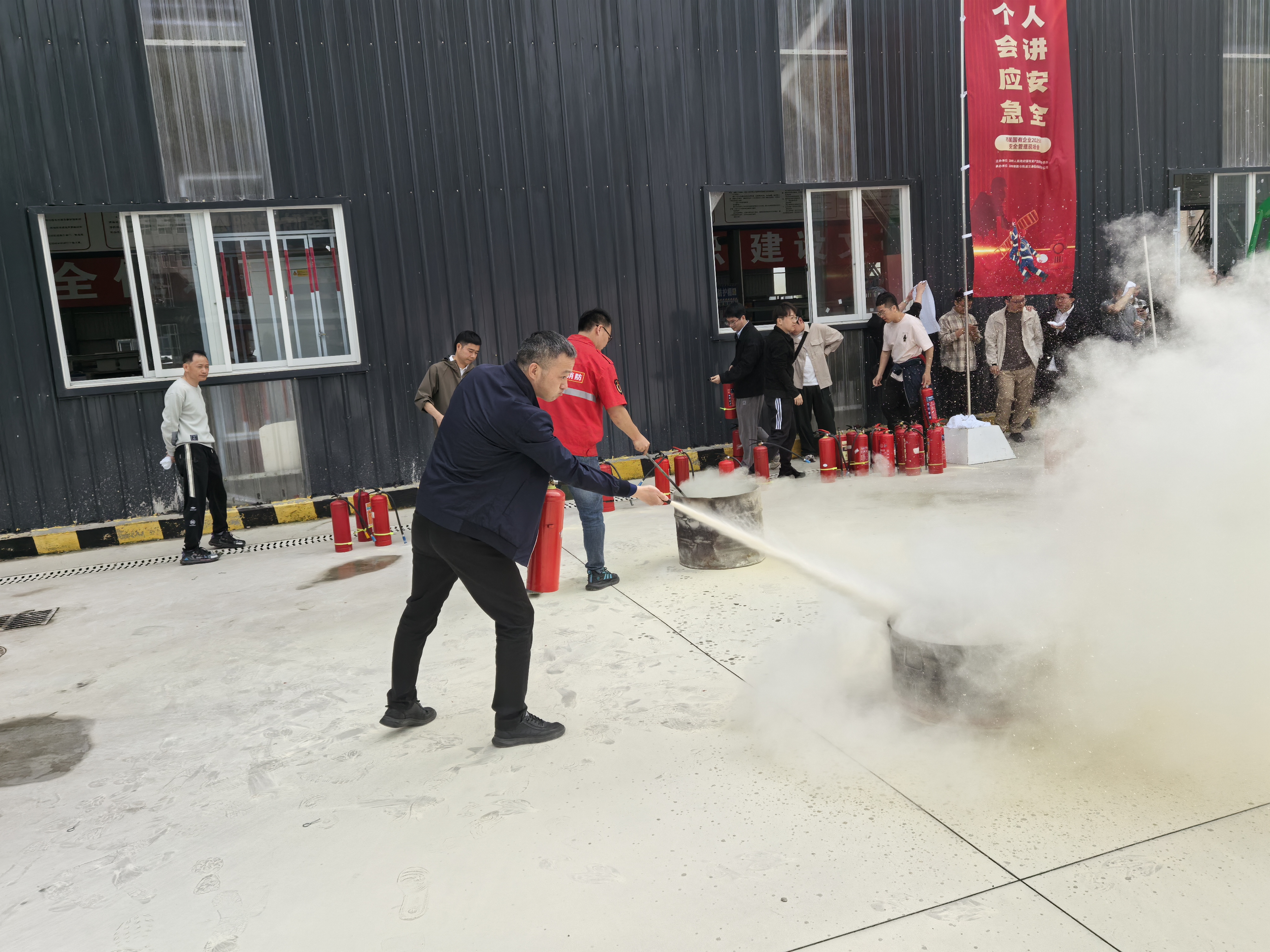 活動中,市國投公司參會人員參觀市域鐵路 S3 線綜合基地及安全體驗(yàn)館,實(shí)地了解“AI+物聯(lián)網(wǎng)”智慧工地管理系統(tǒng);在消防逃生演練環(huán)節(jié),參訓(xùn)人員在模擬火災(zāi)場景中實(shí)操疏散逃生和滅火演練,強(qiáng)化應(yīng)急處置實(shí)戰(zhàn)技能;在專家授課環(huán)節(jié),通過分享典型火災(zāi)案例,剖析電氣故障、電動自行車充電等高頻風(fēng)險點(diǎn),為企業(yè)細(xì)化安全隱患排查提供專業(yè)指導(dǎo)。