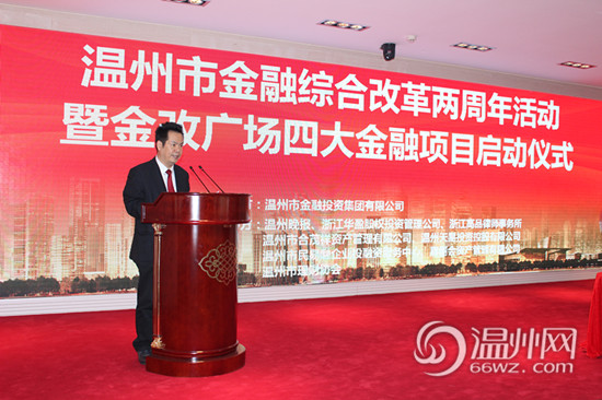 圖為溫州市金融投資集團有限公司負責人岑利發(fā)表講話。