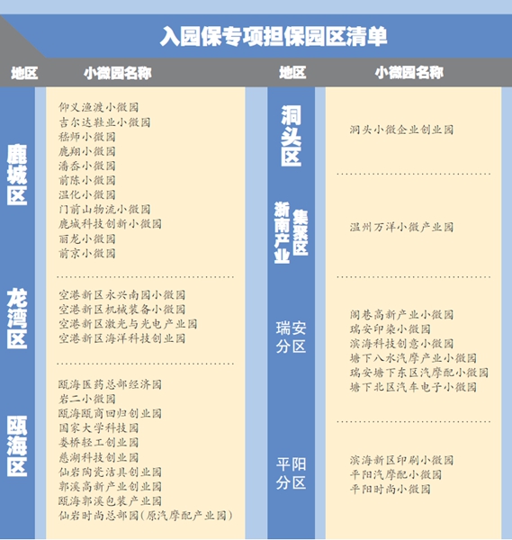 ???流動資金不足一直是企業(yè)入駐小微園的“首要困境”。在廣泛的調(diào)研基礎(chǔ)上,信保中心創(chuàng)新推出“入園保”專項產(chǎn)品,專門用于解決小微企業(yè)購買、租用園區(qū)廠房、彌補入園后流動資金不足等問題。凡在溫州小微園內(nèi)入駐的企業(yè),融資用于實體經(jīng)濟的,均可以申請“入園?!比谫Y擔保服務(wù)。
